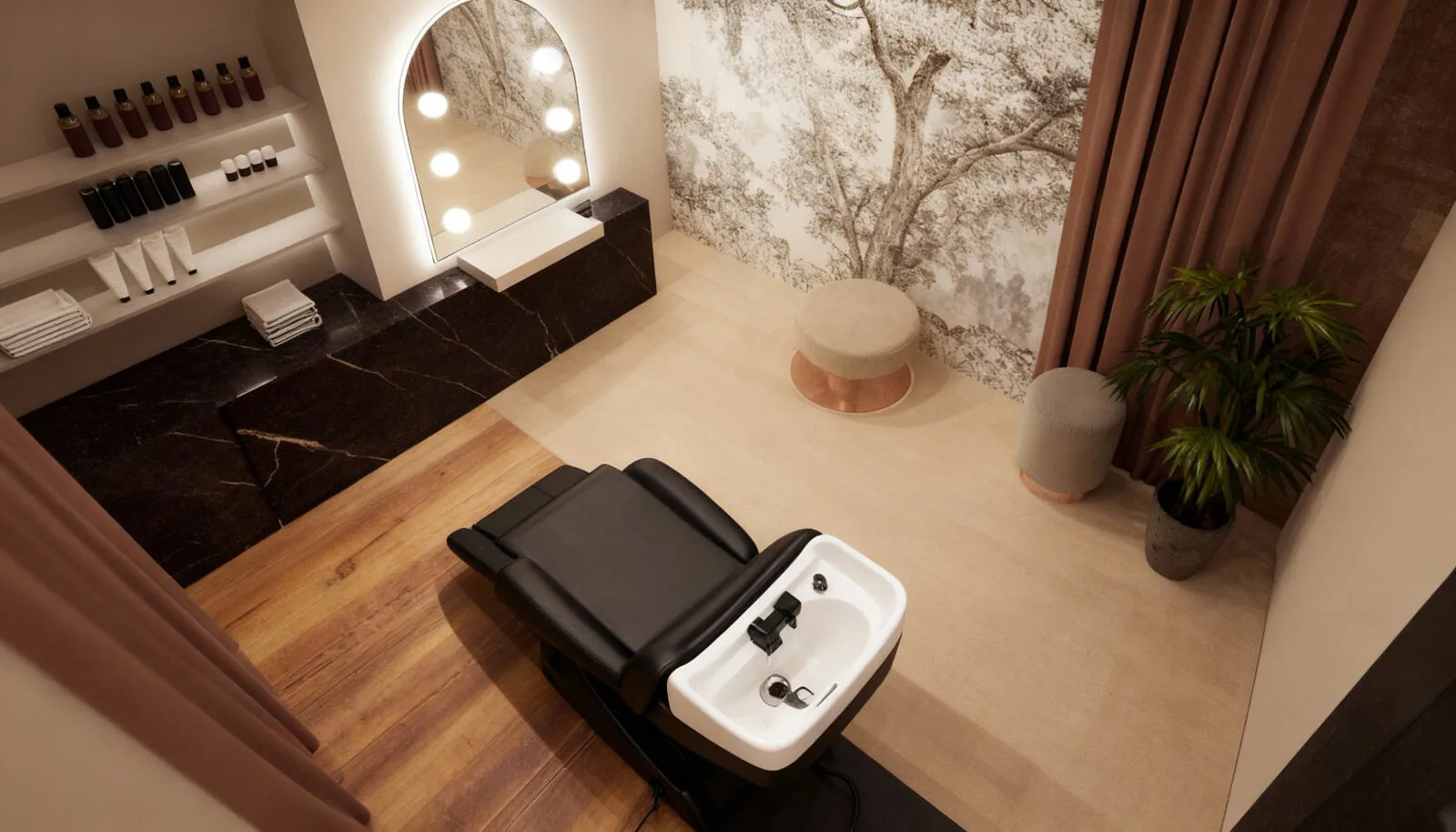 Uno spazio Hair Spa è un luogo sospeso tra silenzio e materia, dove luce, acqua e superfici dialogano per creare un paesaggio sensoriale. Qui il gesto quotidiano diventa rituale.